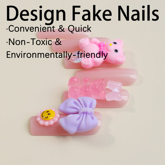 Candy Fantasy Extra Long Square Press On Nails with Pink Palette and 3D Confectionery Embellishments