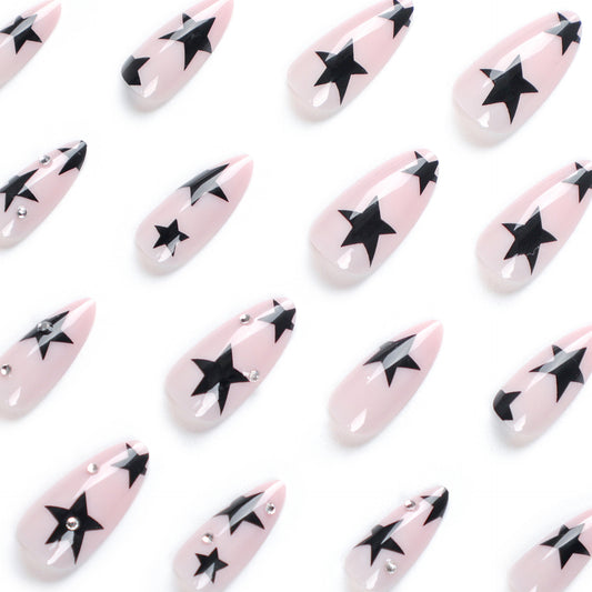 Backstage Rockstar Medium Almond Black Studded Press On Nails