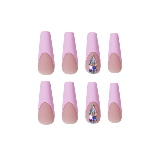 Romantic Affair Extra Long Coffin Blush Pink Press On Nails with Angelic Embellishments and Pearl Accents