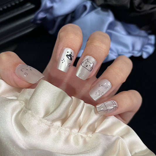 Romantic Heartfelt Design Short Squoval Pink and Black Nail Set Featuring Cute Love Expressions