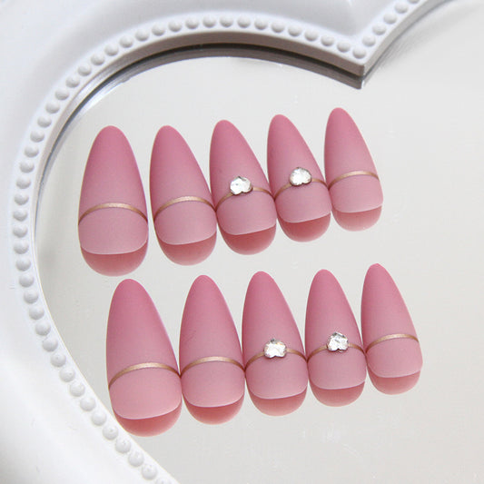 Romantic Heartfelt Medium Almond Shaped Blush Pink Press On Nail Set with Delicate Red Heart Accents