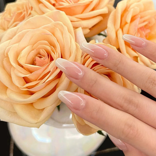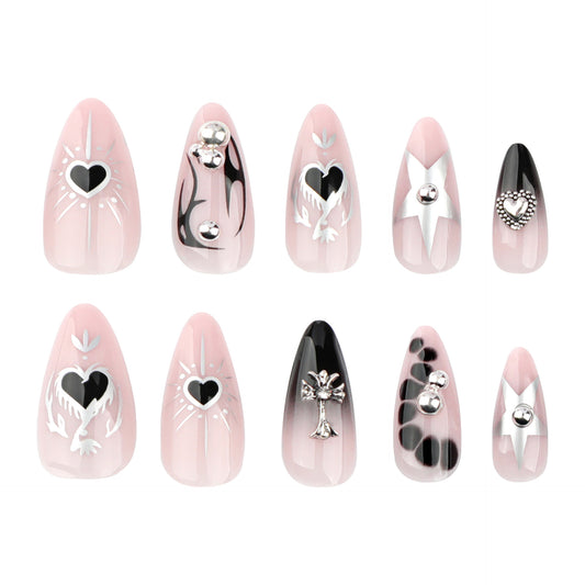 Romantic Heart Theme Medium Oval Pink White Nail Set with Charming Love Design