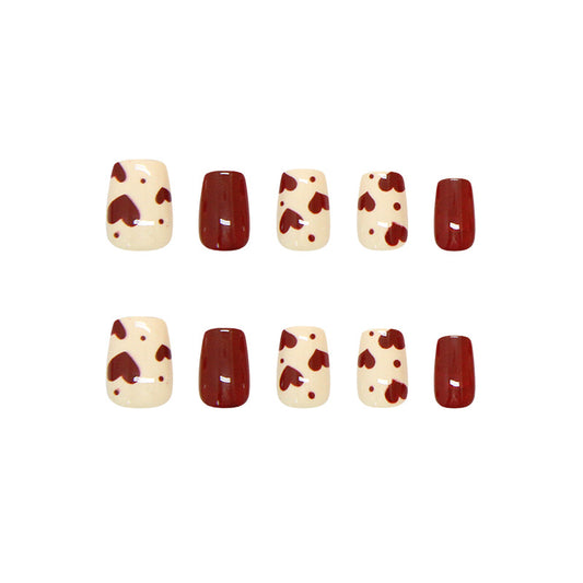 Romantic Heartfelt Celebration Press On Nail Set in Short Square Burgundy with Unique Heart Patterns