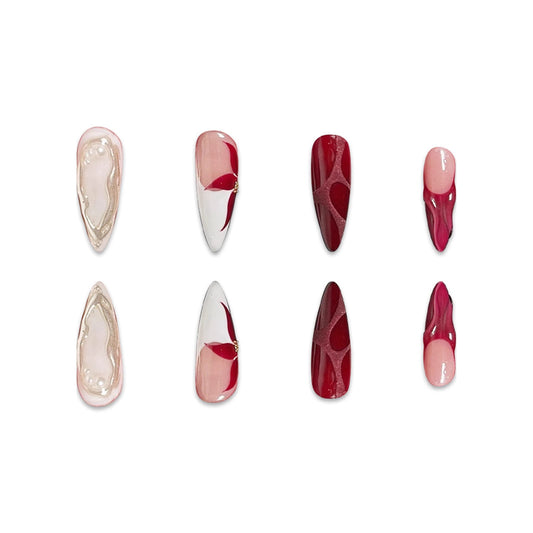 Romantic Heartfelt Clusters Short Almond and Short Oval Pink and Red with Dazzling Heart Designs Press-On Nail Set