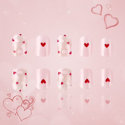 Romantic Heart Theme Short Square Pink and Red Press on Nail Set with Charming Love Design
