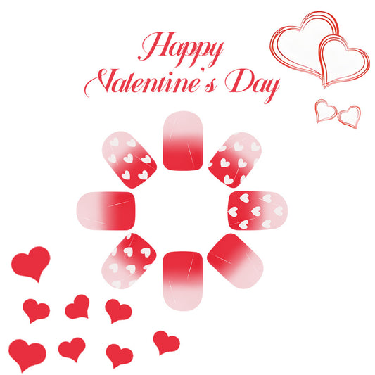 Romantic Heart Medium Square Shaped Red and Pink Nail Press Set with Glittering Love Design