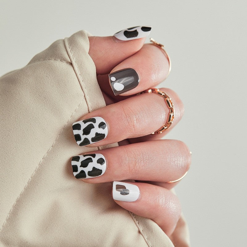 Alien Cows Short Squoval White Animal Pattern Press On Nails