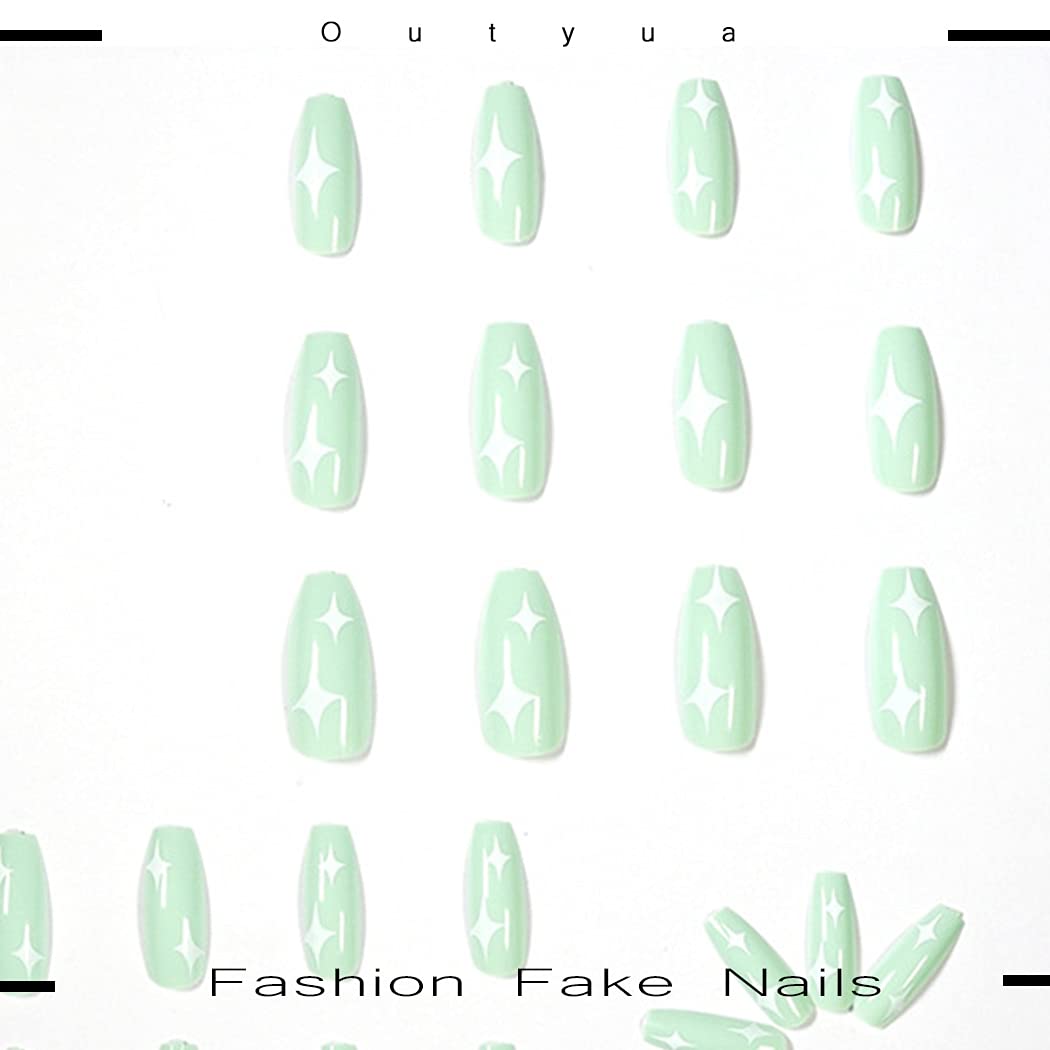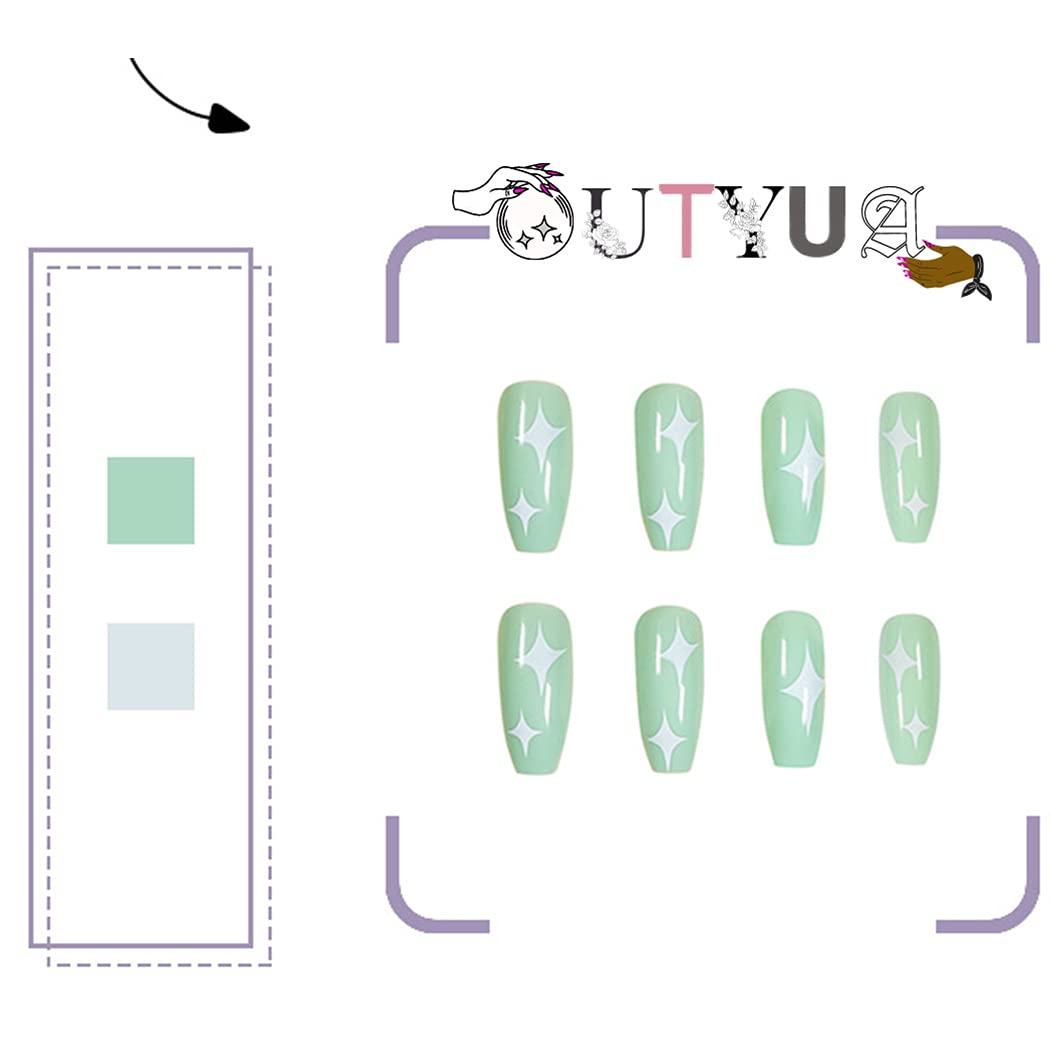 Anime Twinkle Long Coffin Green Pattern St. Patrick's Day Press On Nails