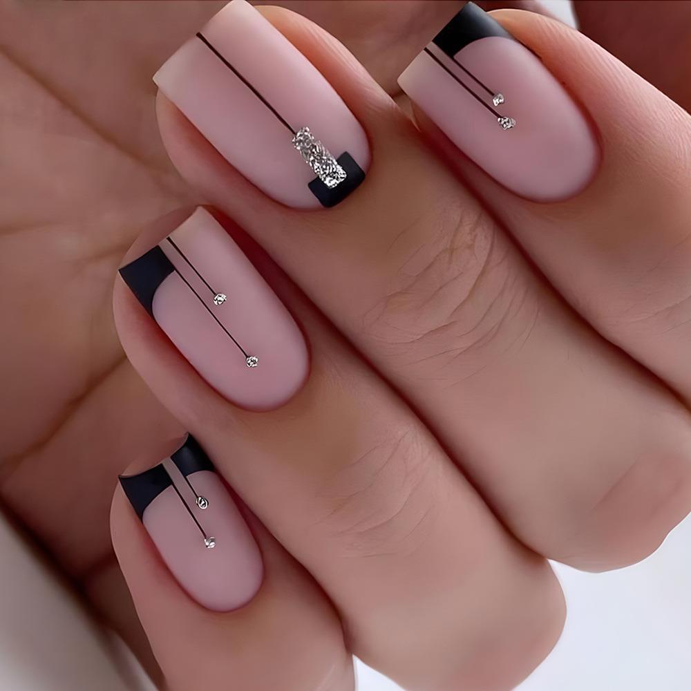 Prism Power Medium Square Black Galaxy Press On Nails