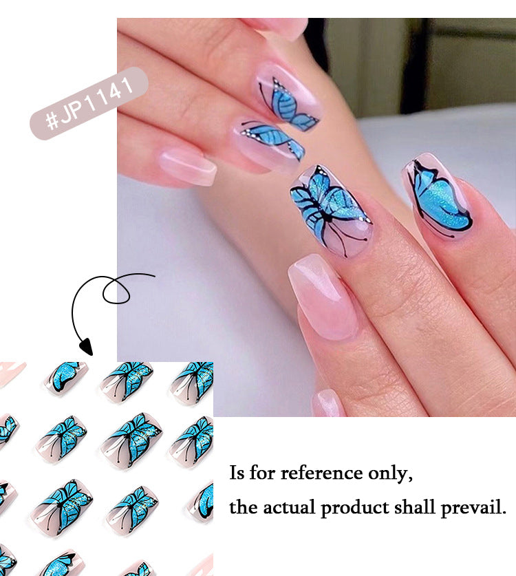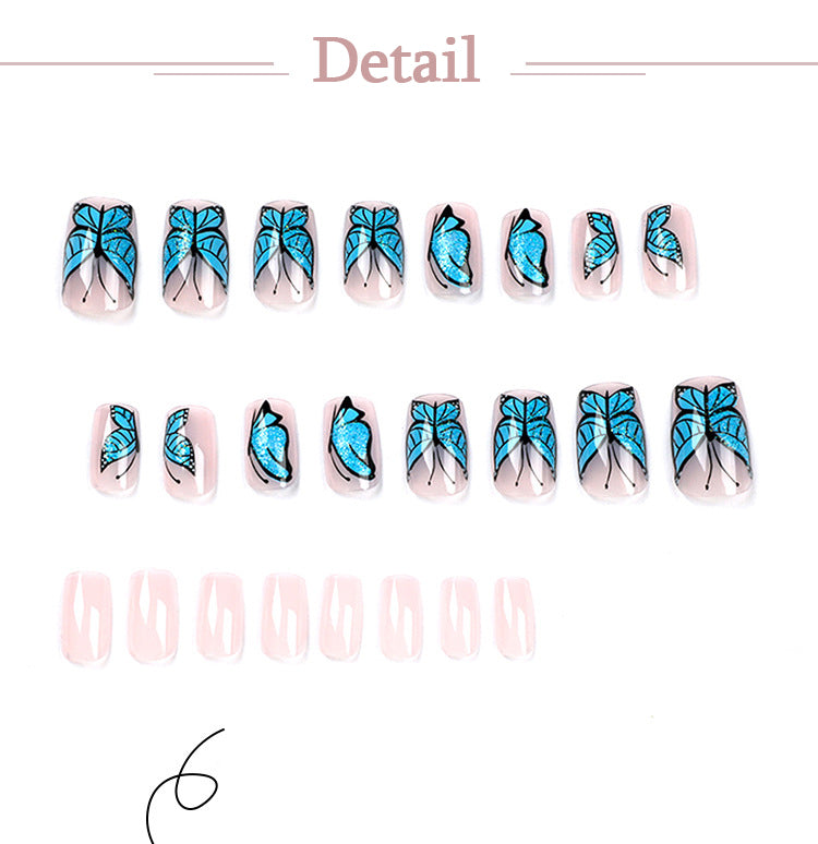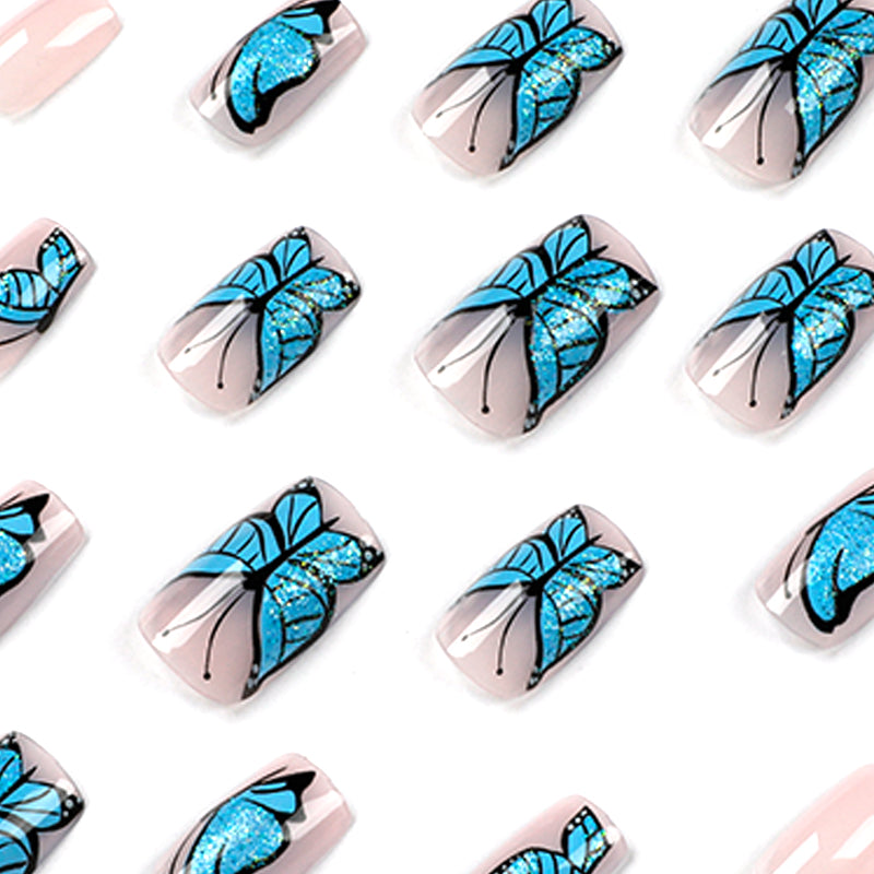 Arctic Butterfly Short Square Blue Spring Press On Nails