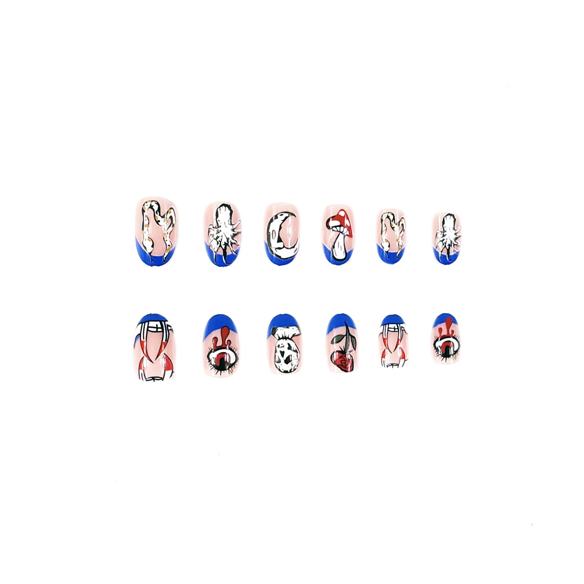 Artistic Wonderland Medium Oval Blue and Pink Press On Nail Set with Unique Abstract Designs