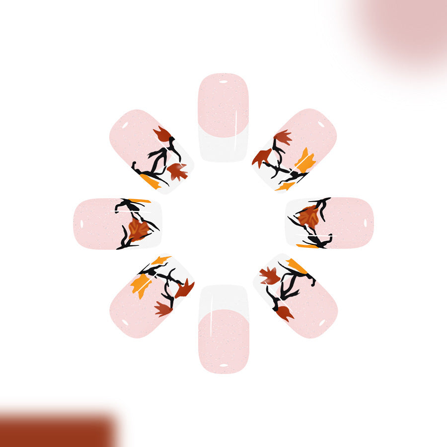 Autumn Elegance Medium Square Light Pink with Floral Detailing Press On Nail Set