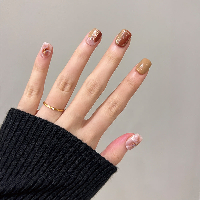 Autumn Elegance Short Square Beige Press On Nail Set with Floral Accents