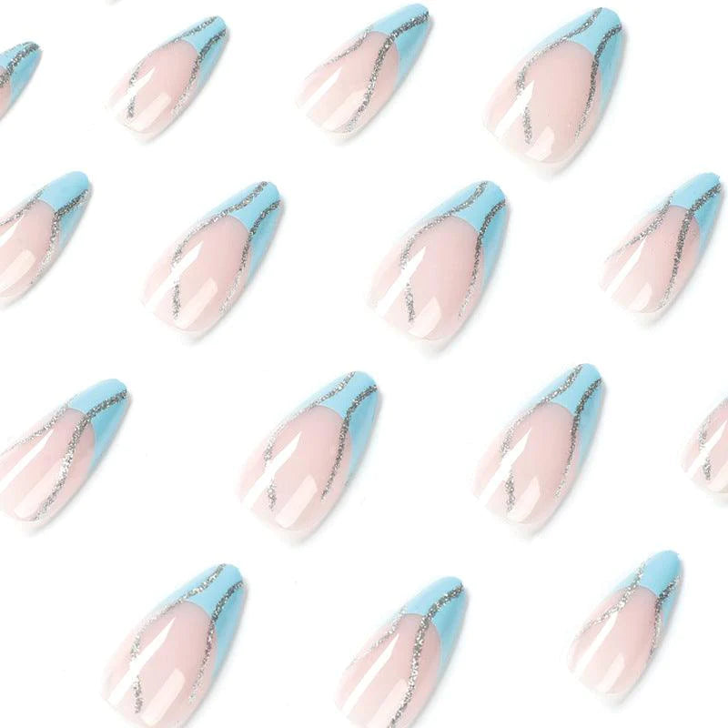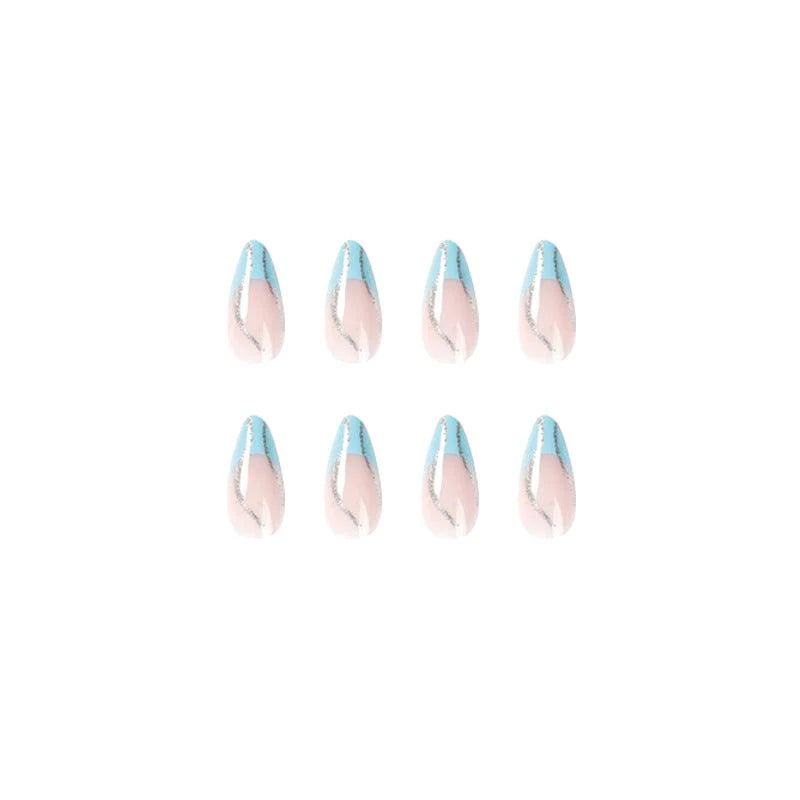 Baby Blue Skies Long Almond Blue French Tips Press On Nails