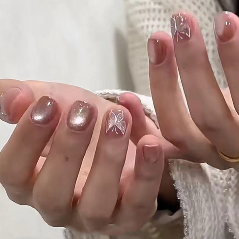 Butterfly Kisses Short Length Square Pink Glitter Press On Nail Set with 3D Embellishments