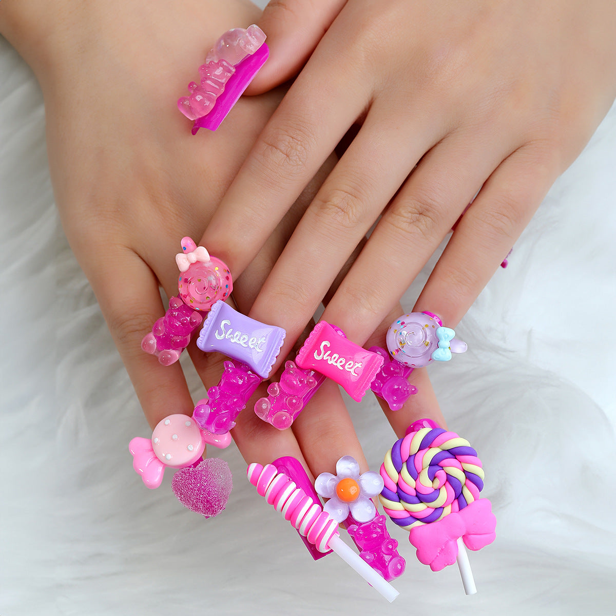 Candy Kingdom Long Square Pink Press On Nails with 3D Sweets and Glitter Embellishments