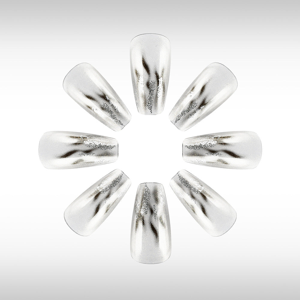Celestial Dreams Long Coffin Silver Ombre Glitter Press On Nail Set
