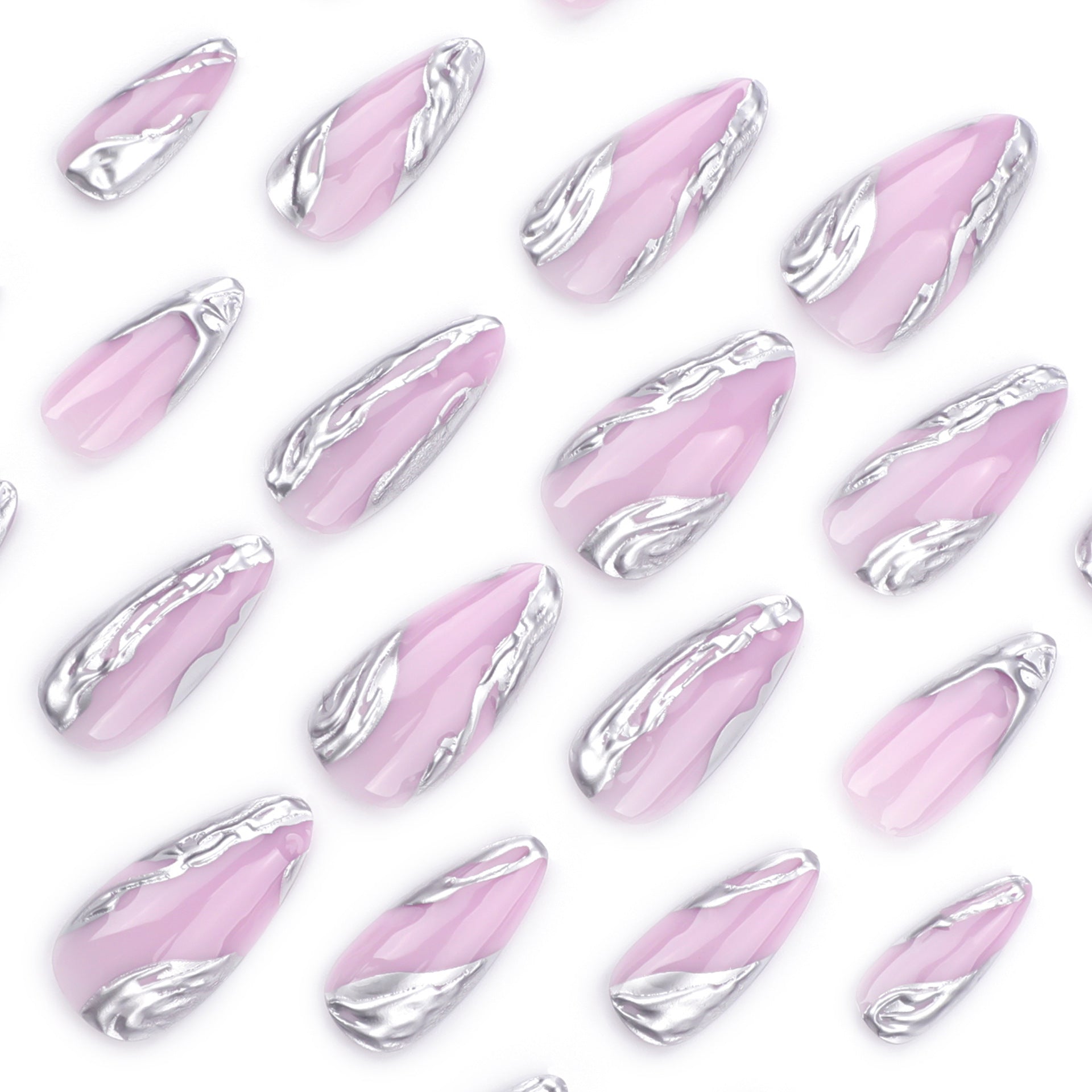 Celestial Dreamscape Short Almond Pink and Metallic Swirl Press-On Nail Set