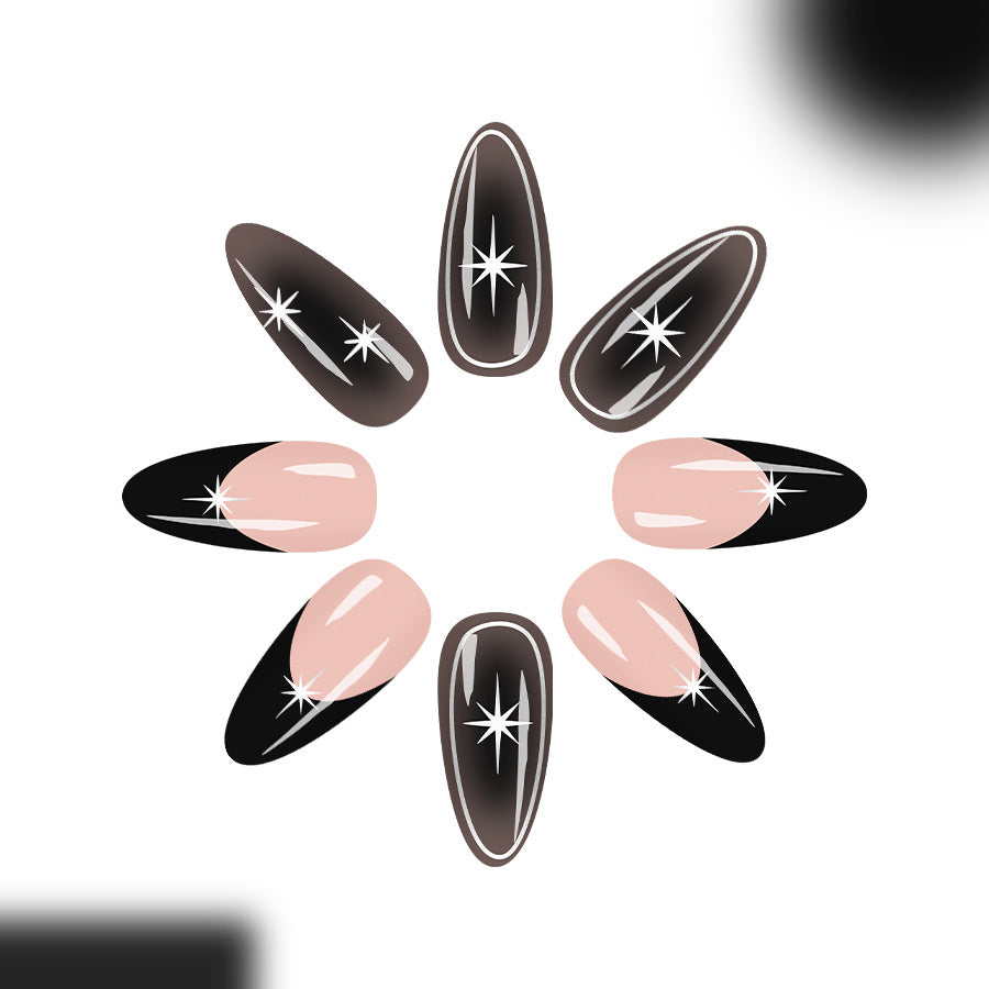Celestial Elegance Long Almond Black and Pink Press On Nail Set with Sparkling Stars