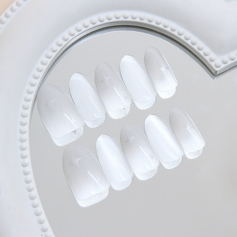 Celestial Elegance Long Almond Shaped Translucent White Nail Set with Dazzling Star Accents