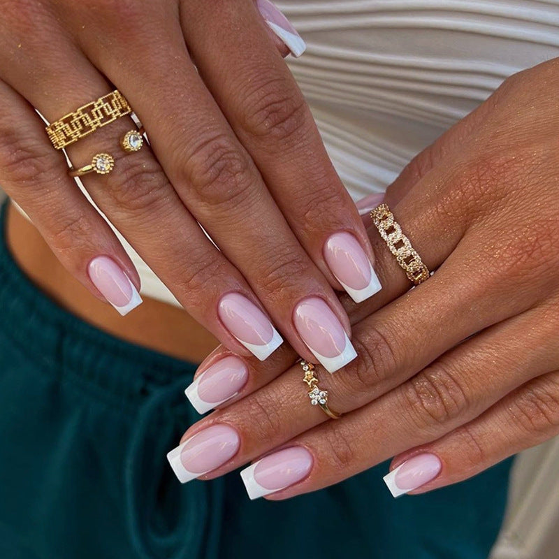 Certainly Discussed Medium Square White French Tips Press On Nails
