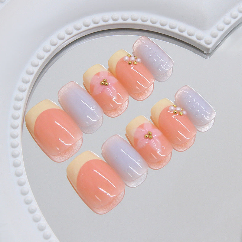 Charming Blossom Medium Square Pink and Lavender Press On Nail Set with Elegant Floral Accent