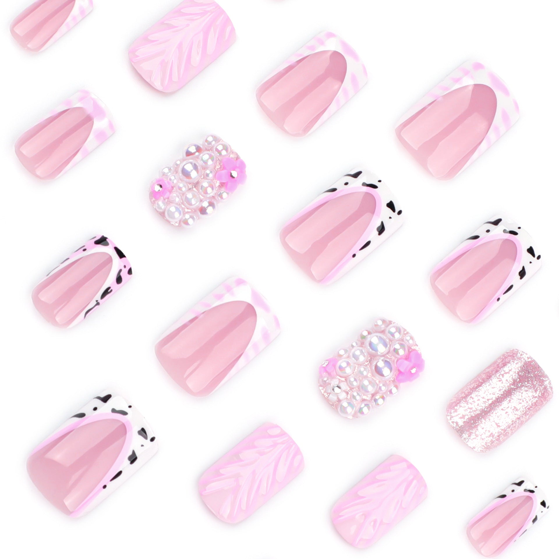Charming Blossom Press On Nail Set Short Square Pink with Sparkling Accents
