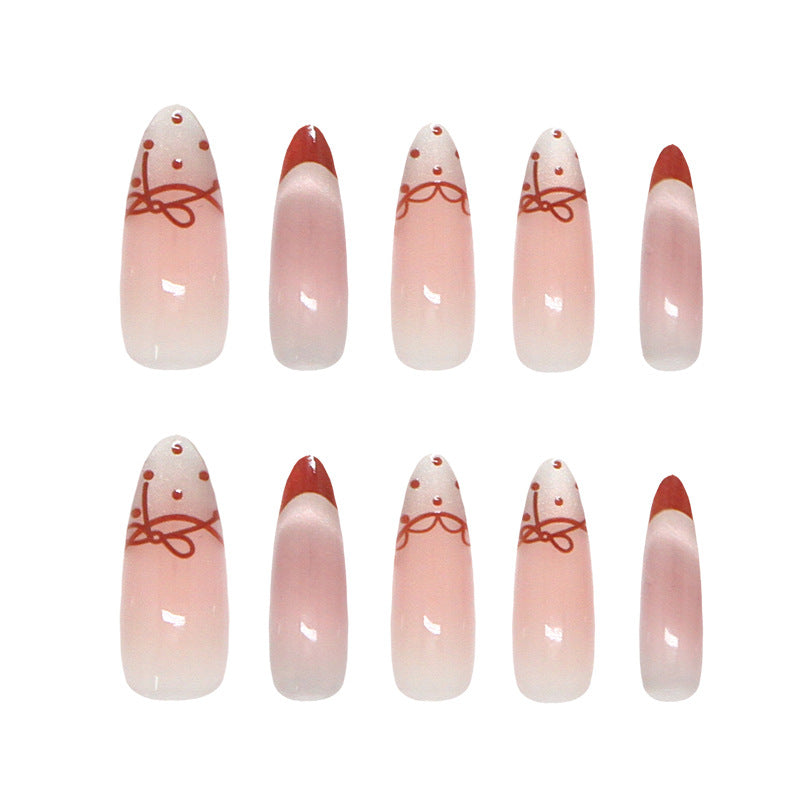 Charming Dream Press On Nails Long Almond Blush Pink with Elegant Bow Accents