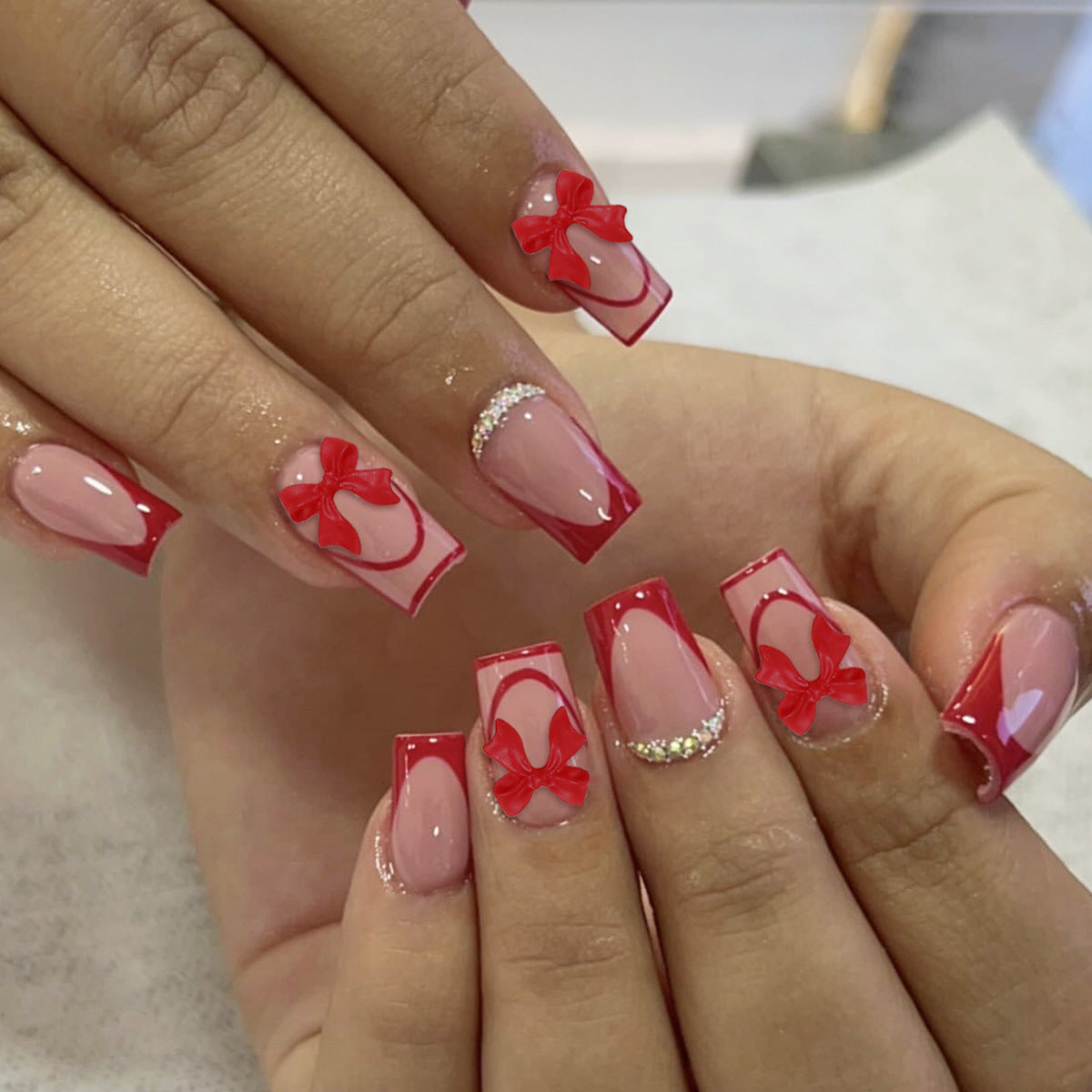 Chic Celebration Elegant Medium Square Red Design with Adorable Bow Accents