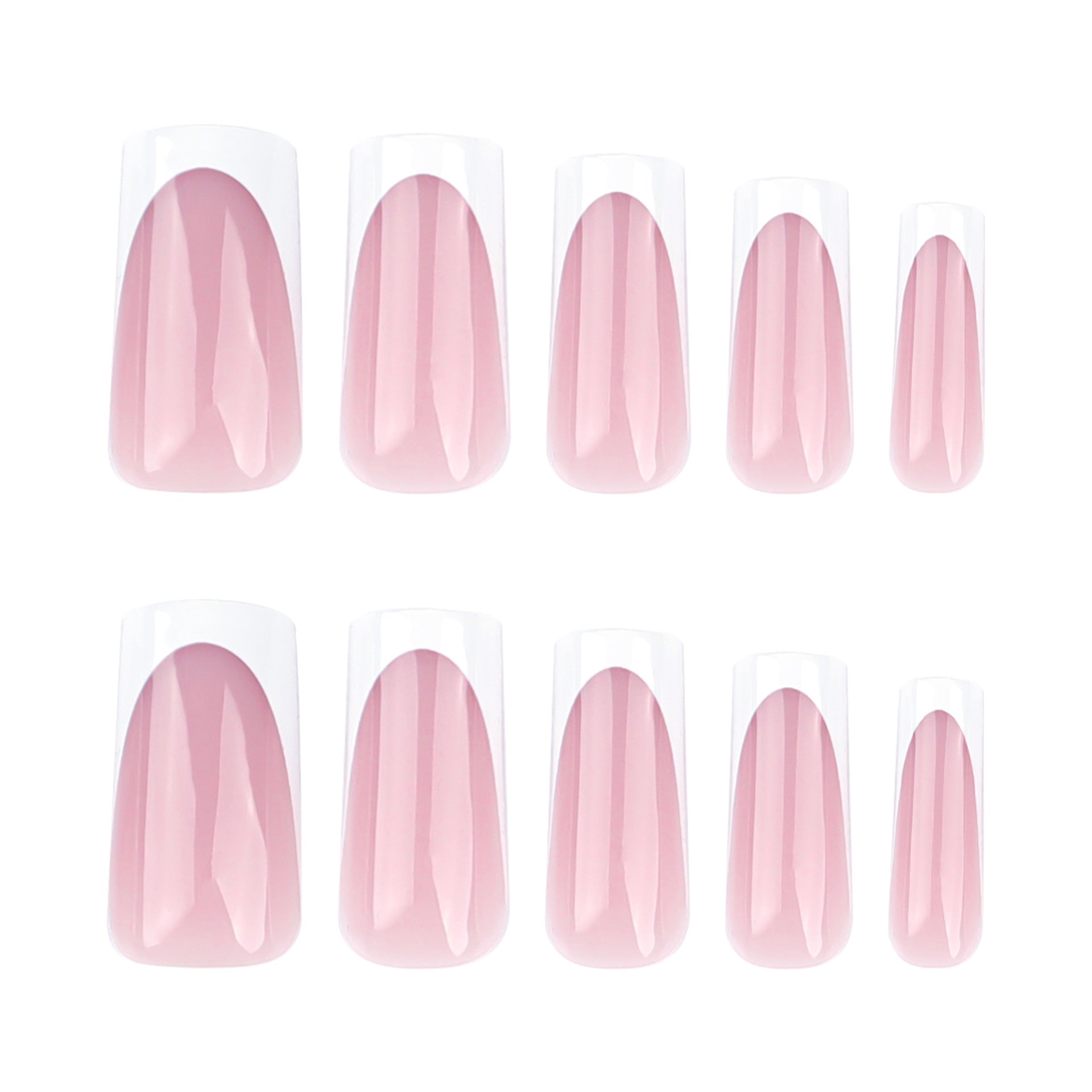 Chic Elegance Long Square Blush Pink Press On Nail Set with Stunning French Tip Design