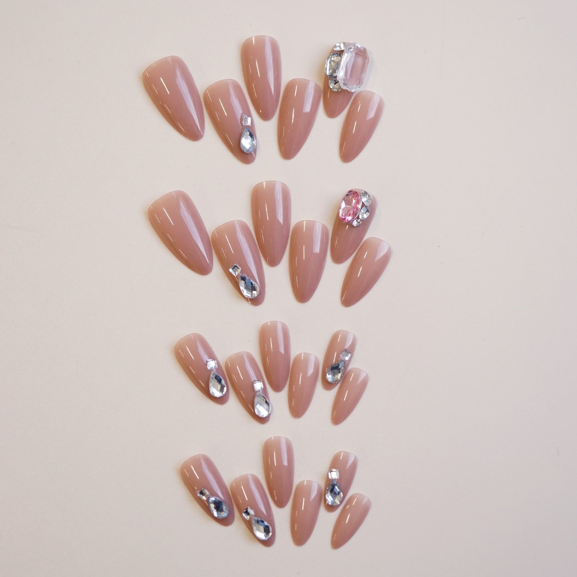 Chic Elegance Medium Almond Blush Pink Press On Nails with Sparkling Gemstones