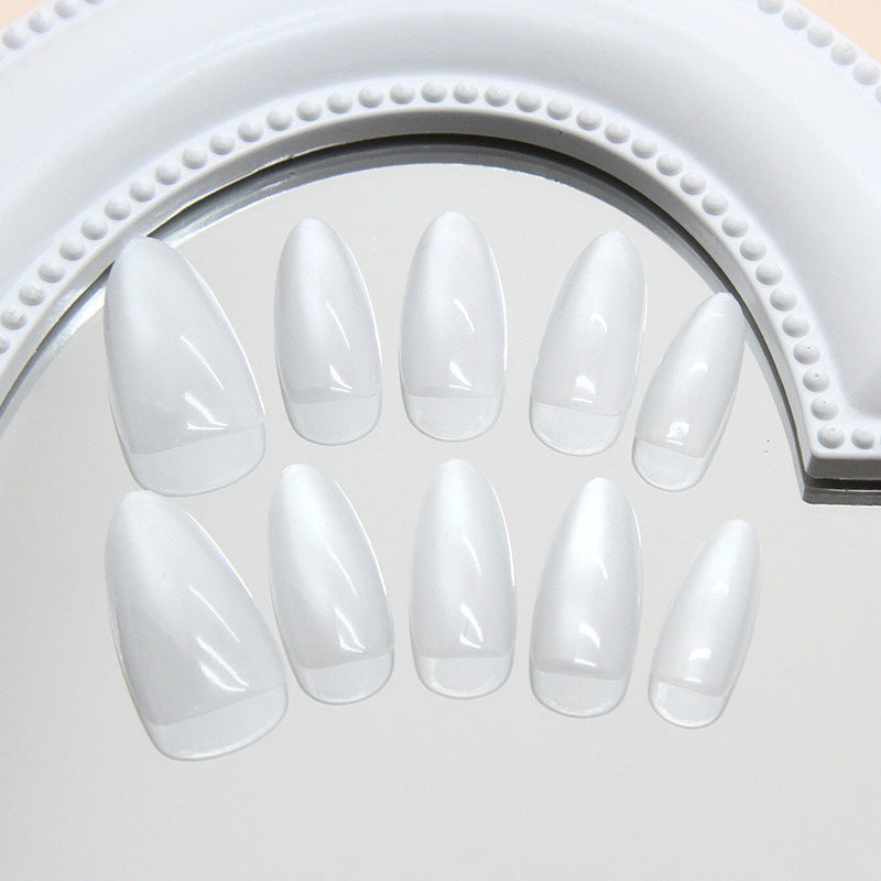 Chic Elegance Medium Almond White Press On Nail Set with Glitter Tip Finish