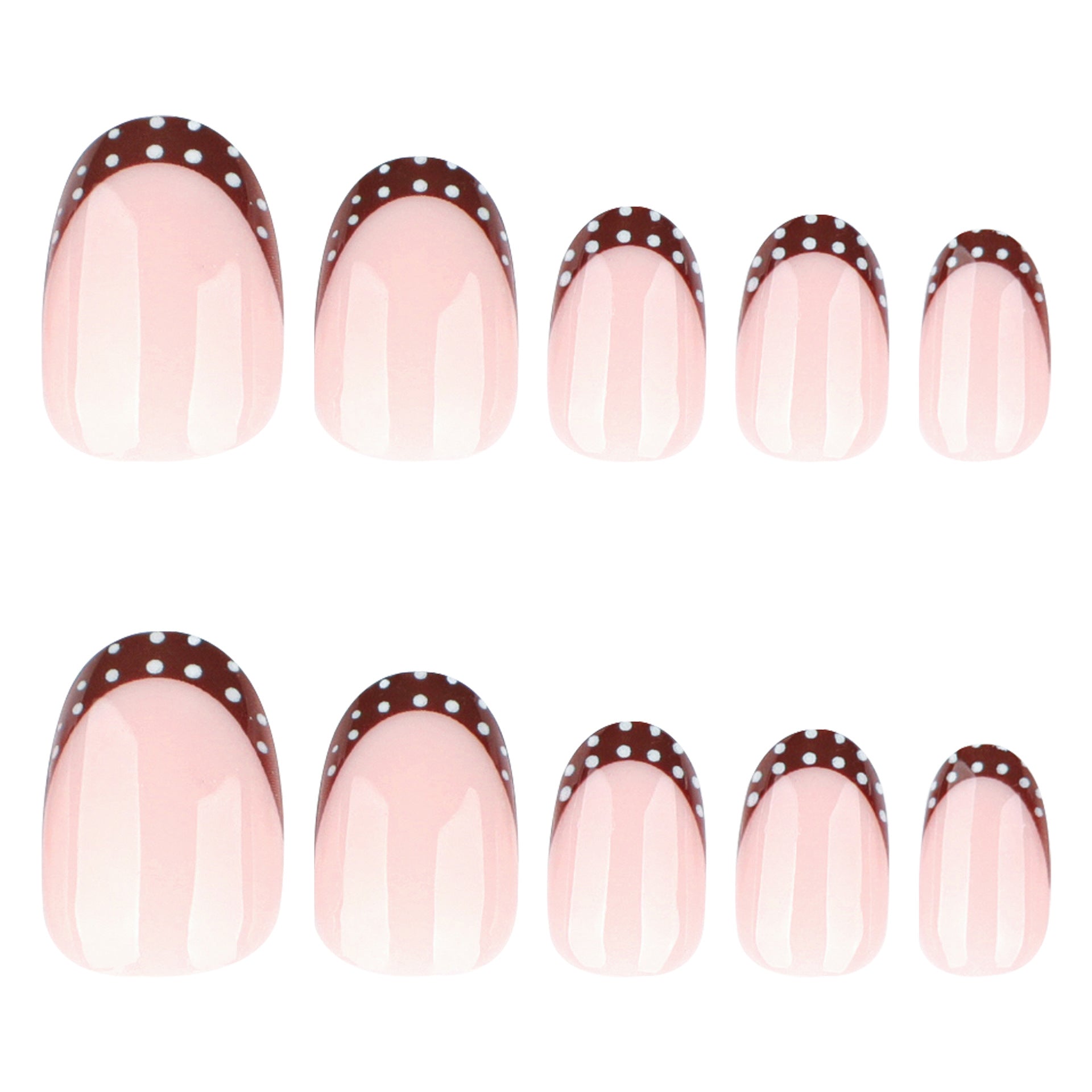 Choco-Dot Delight Press-On Nail Set Short Oval Soft Pink with Charming Brown Polka Dots