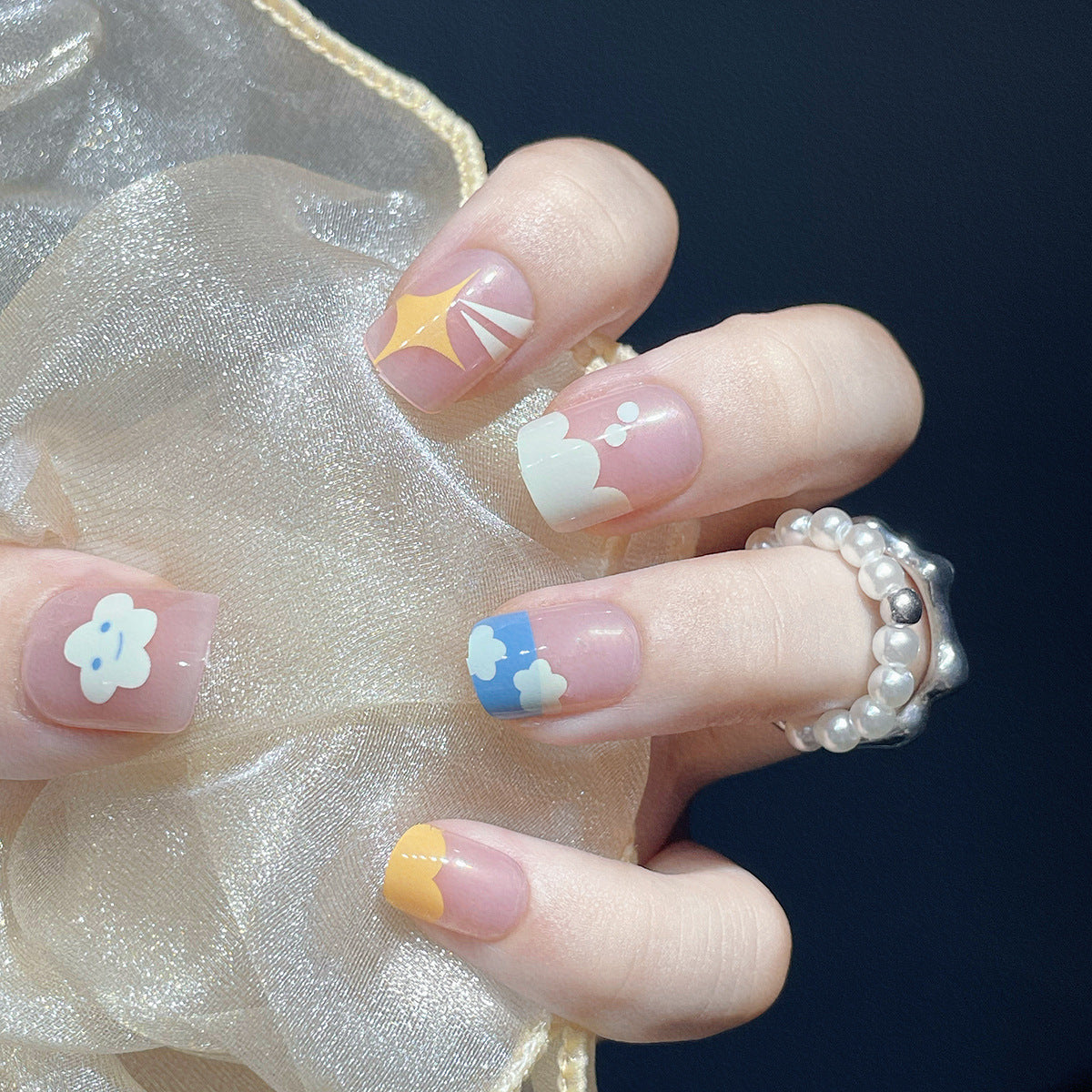 Cloudy Daydream Short Squoval Pastel Ombre Press On Nail Set with Playful Cloud Accents