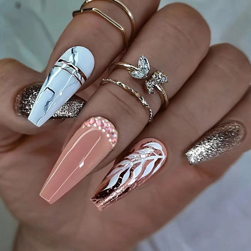 Swipe My Card Long Almond Pink Studded Press On Nails