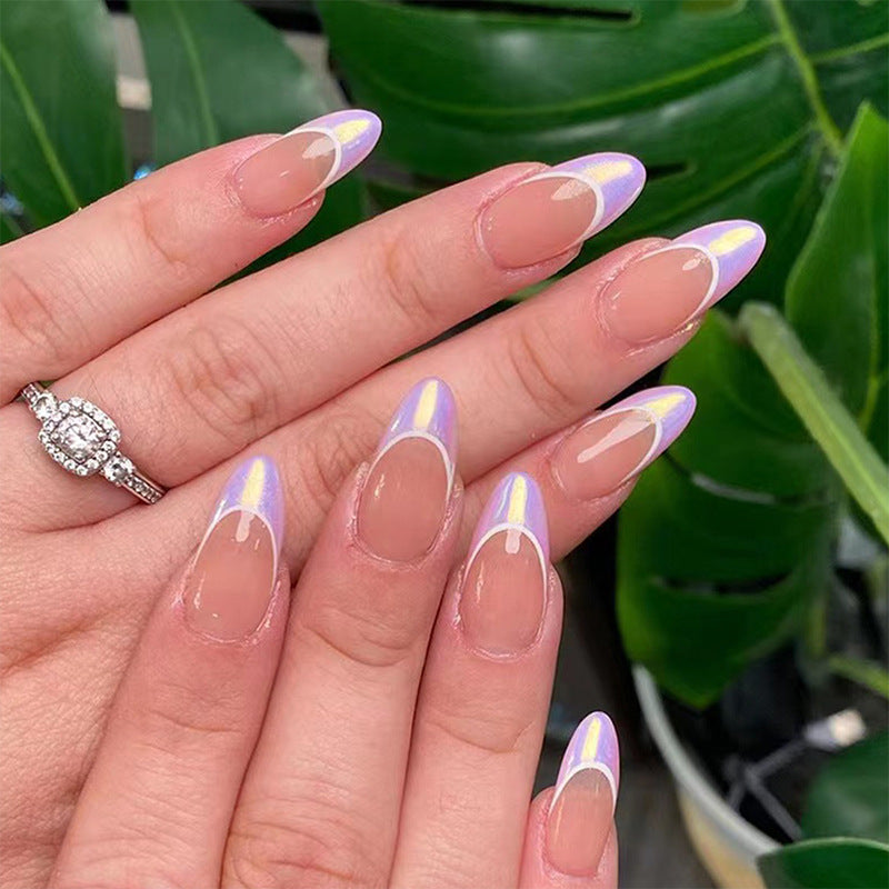 Cosmic Dream Press On Nail Set Long Almond Shape Clear Purple Ombre Glitter Finish