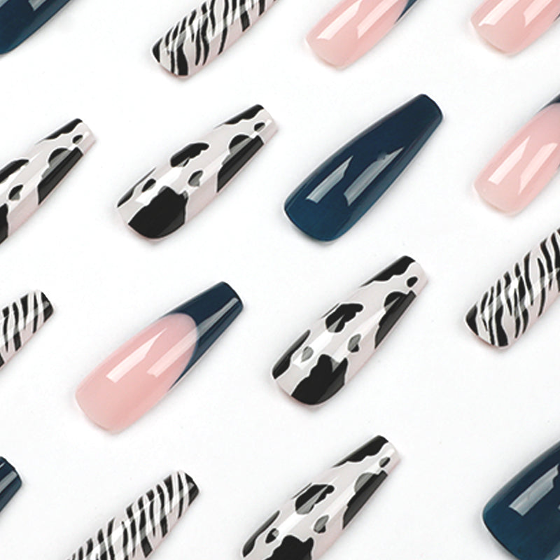 Day At The Zoo Long Coffin Pink Animal Pattern Press On Nails