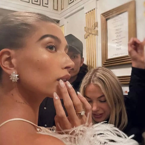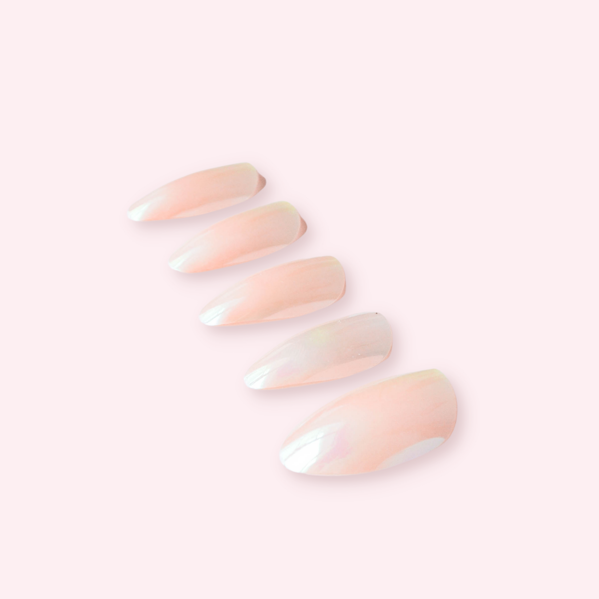 Hailey Glazed Medium Almond Pearl Press On Nails