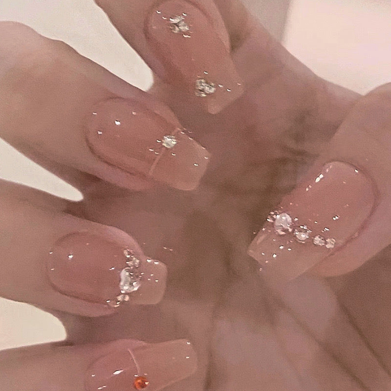 Swipe My Card Long Almond Pink Studded Press On Nails