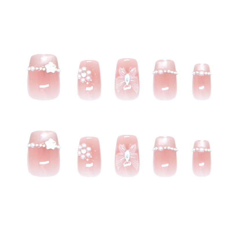 Dreamy Pink Serenity Perfectly Sculpted Short Square Press-On Nails with Elegant Pearl Accents