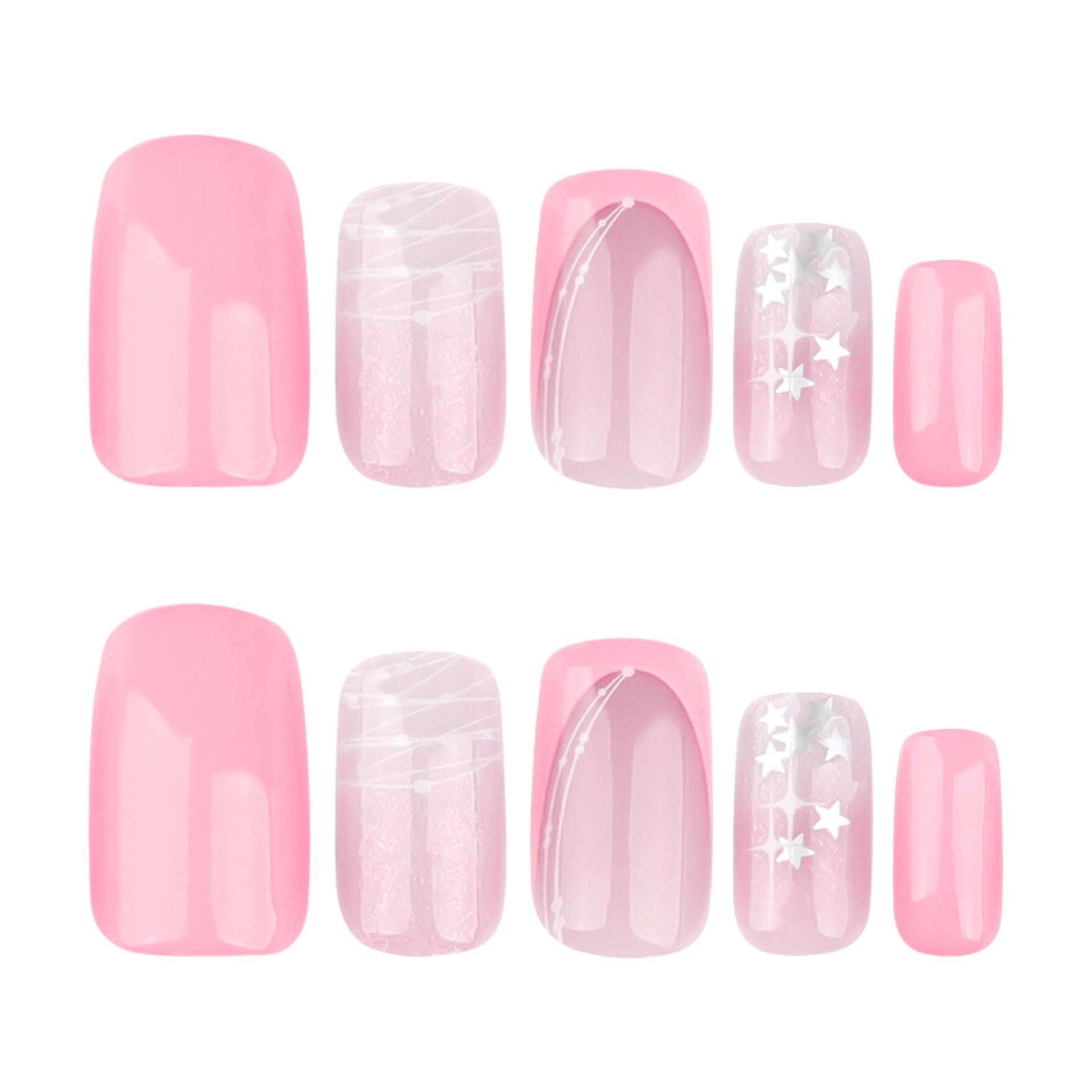 Dreamy Princess Blush Pink Short Square Press On Nail Set with Sparkling Star Accents