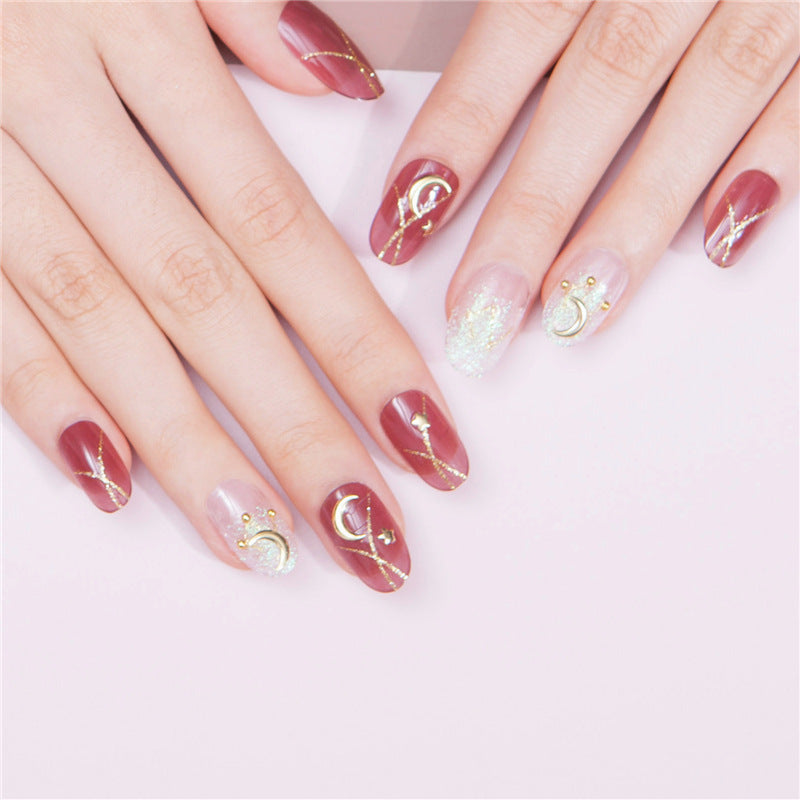 Elegant Affair Medium Round Burgundy and Glitter Press On Nail Set with Rhinestone Accents