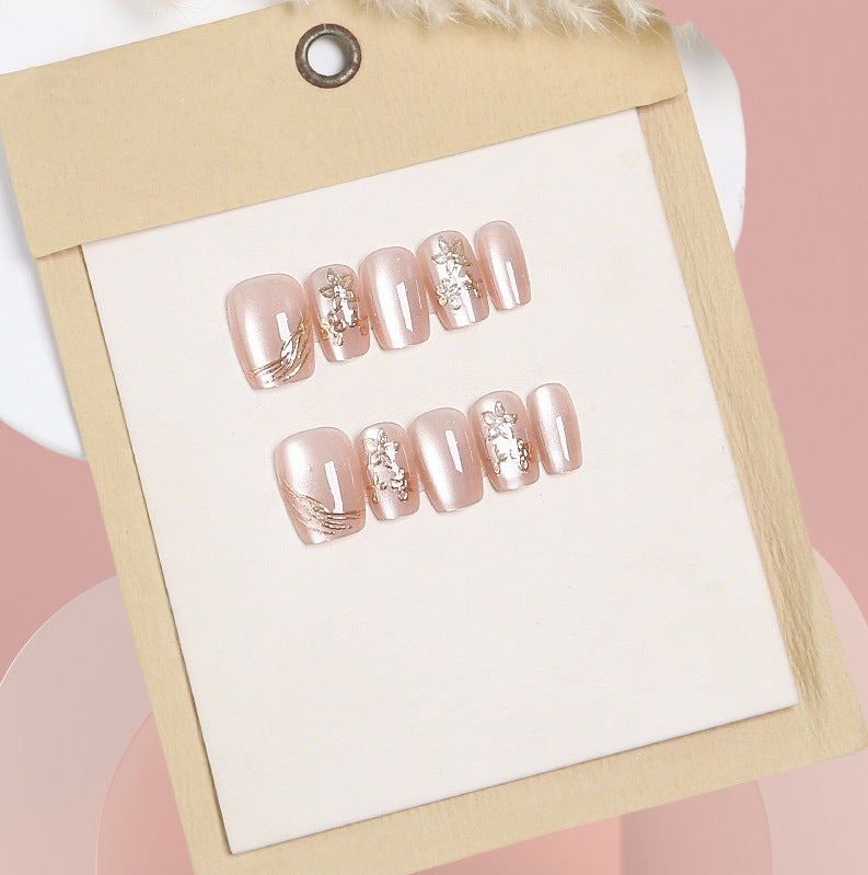 Elegant Blossom Dream Pink Short Square Shape Press On Nail Set with Floral Accent Design