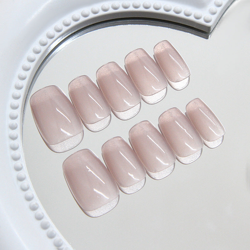 Elegant Blossom Natural Short Square Soft Pink Ombre Press on Nail Set with Glossy Finish