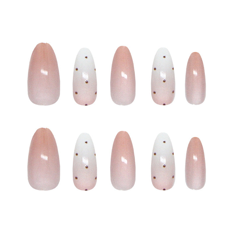 Elegant Blossoms Long Almond Pink and White Gradient with Dotted Design Press on Nail Set
