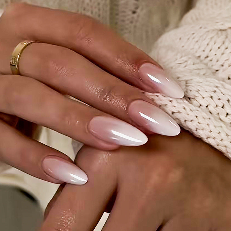 Elegant Bridal Bliss Long Almond Shape Pale Pink Press On Nails with Glossy Finish