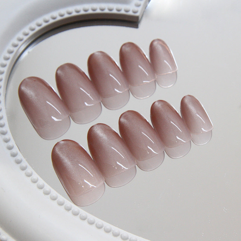 Elegant Charm Medium Almond Soft Pink Press On Nail Set with Iridescent Finish