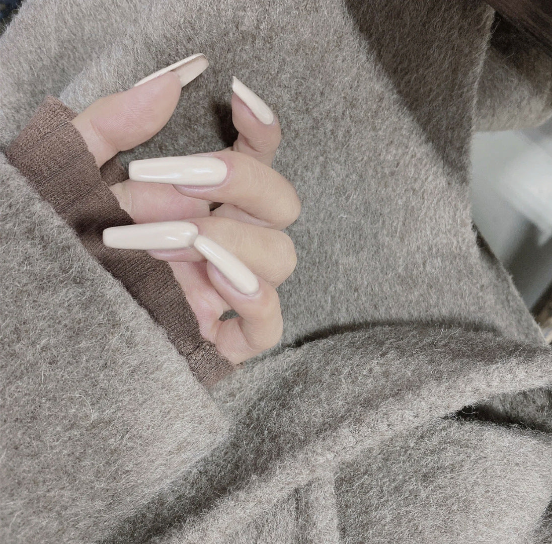 Elegant Chic Extra Long Coffin Shape Glossy Beige Press On Nail Set with Easy Adhesive Application