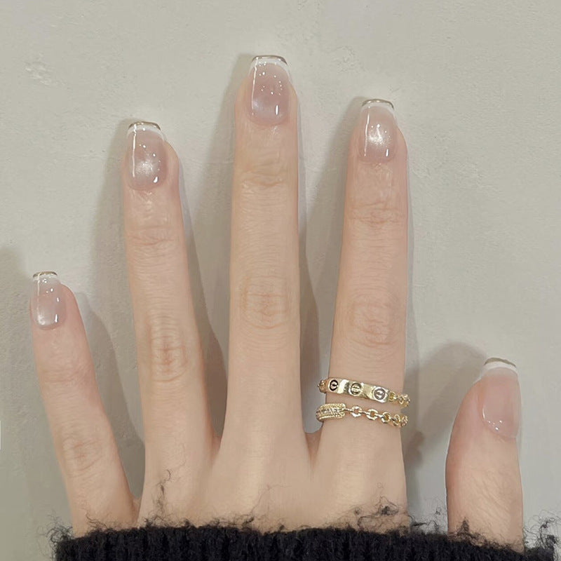 Elegant Garden Medium Square Clear with Glossy French Tips Press-On Nail Set