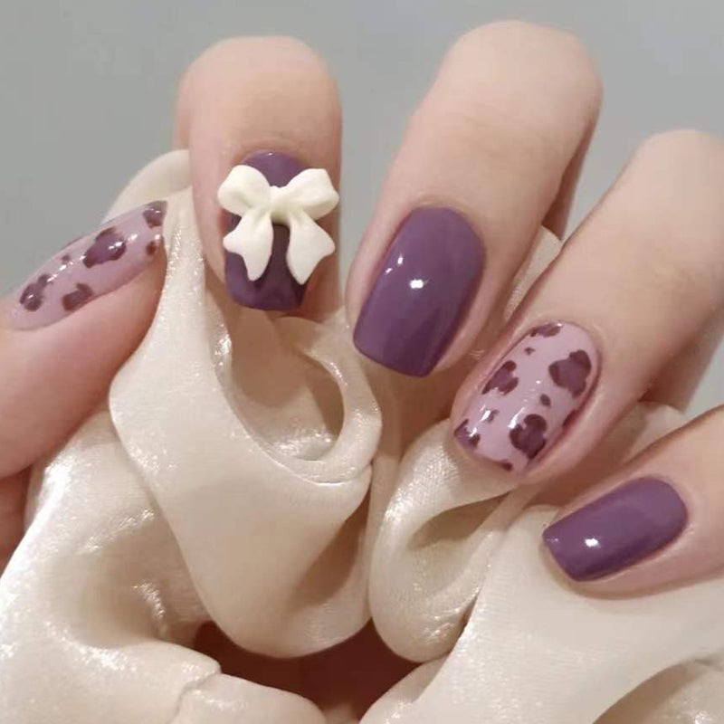 Elegant Lavender Fantasy Medium-Length Square Purple Press On Nails with Embellished 3D Bow Accent